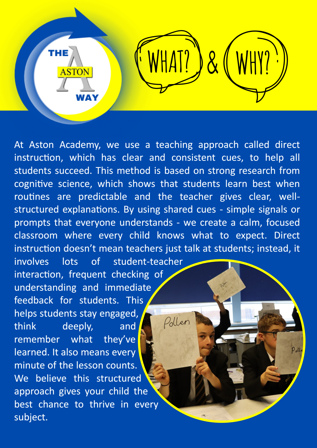 To support the implementation of consistent quality first teaching at Aston Academy, the following non-negotiables are used as a teaching and learning framework:
