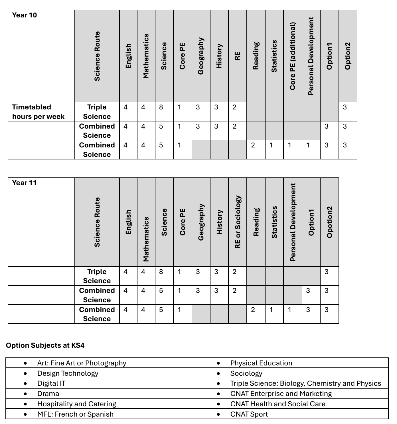 For further information about subjects studied at KS4, please click on the relevant subject.