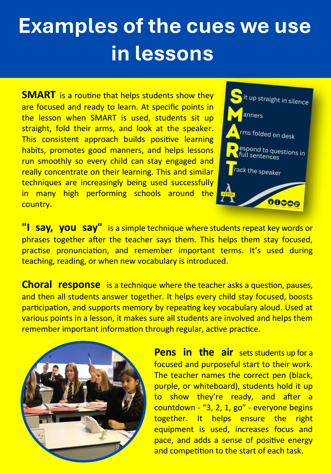 To support the implementation of consistent quality first teaching at Aston Academy, the following non-negotiables are used as a teaching and learning framework: